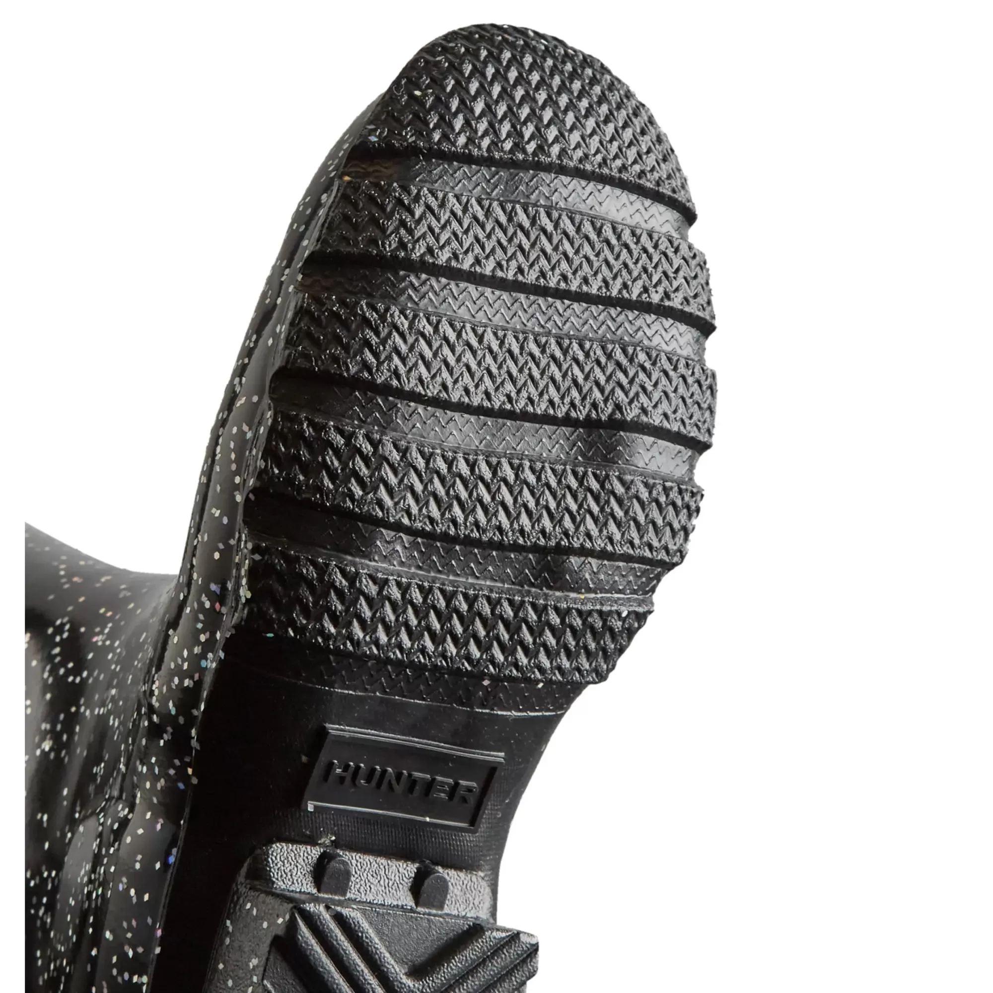 A mini version of the iconic Original Tall Boot, this kids rain boot is a dream for junior explorers. Handcrafted from natural rubber using a process unique to Hunter, the Original Kids Giant Glitter Boot adds a touch of sparkle to rainy days with a shimmering glitter finish. Designed for adventures, our specialized kids wellies are highly resistant to wear and abrasion with a recycled polyester lining for comfort. Reflective patches and the Hunter Original tread offer added safety so you can be confident letting them take on the elements whatever the weather.