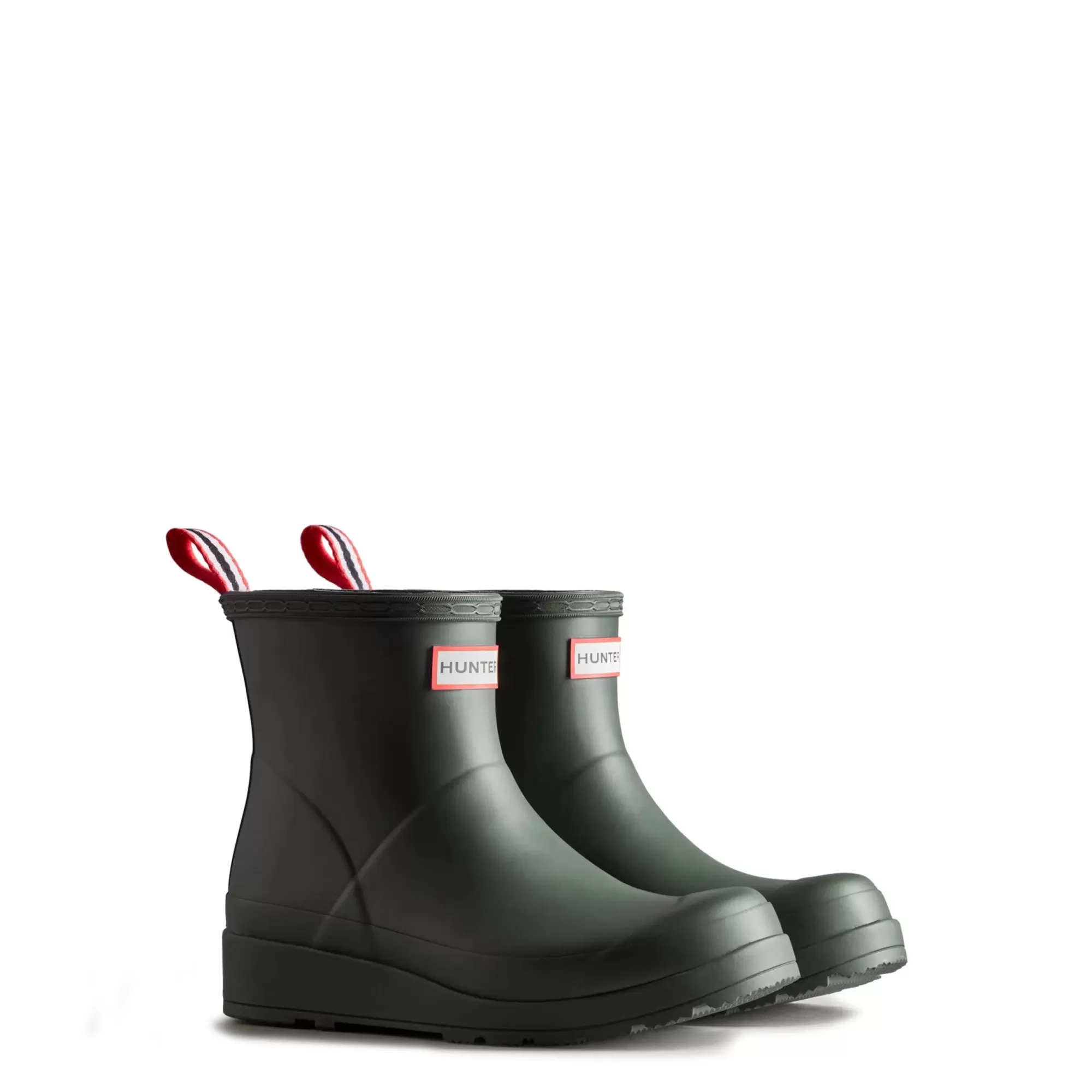 The Play Boot blends playfulness and practicality. A simplifying of the iconic design of the Original Boot, the Play Boot fast became a best-selling Hunter silhouette. Just grazing the top of the ankle, with a flatter platform sole for comfort, finished with a pull tab for easy foot entry. The design is crafted from the highest quality natural rubber, 100% recycled polyester lining and is 100% waterproof.
